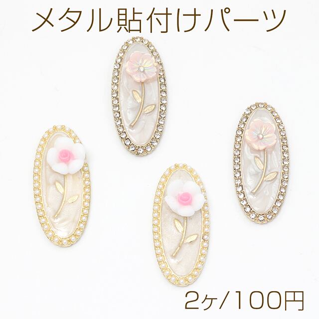 M3041 メタル貼り付けパーツ お花 フラワー ドライフラワー 額縁 約13×30mm(2ヶ) | Beads&parts BASE2号店