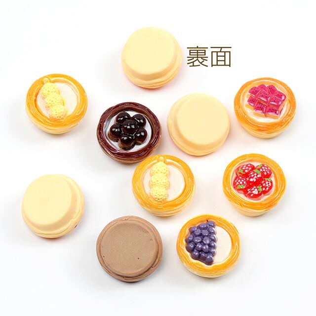 A049 樹脂貼付けパーツ エッグタルト スイーツ 食品サンプル カラフル レジン ※種類ランダム 約21mm(10ヶ) | Beads&parts BASE2号店