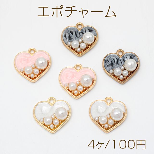M7156 エポチャーム ハート パール付き 合金製 約17×18mm(4ヶ) | Beads&parts BASE2号店